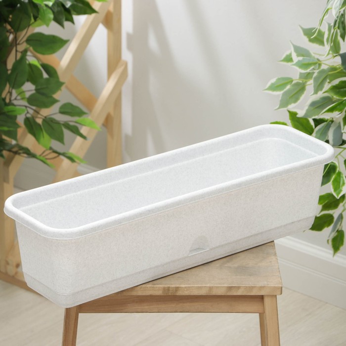 Ящик для цветов балконный с поддоном, 60 см, цвет мраморный