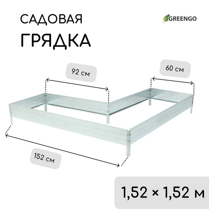 Грядка оцинкованная, Г-образная, 152 × 60 × 15 см, Greengo