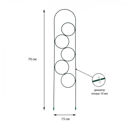 Колышек универсальный, h=30 см, ножка d=0.3 см, набор 10 шт., зелёный, Greengo
