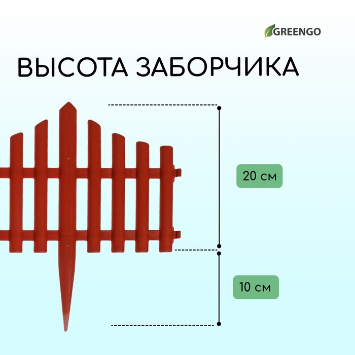 Ограждение декоративное, 30×300 см, 5 секций, пластик, терракотовое, Greengo