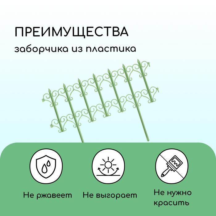 Ограждение декоративное, 25×180 см, 5 секций, пластик, салатовое, «Классика»