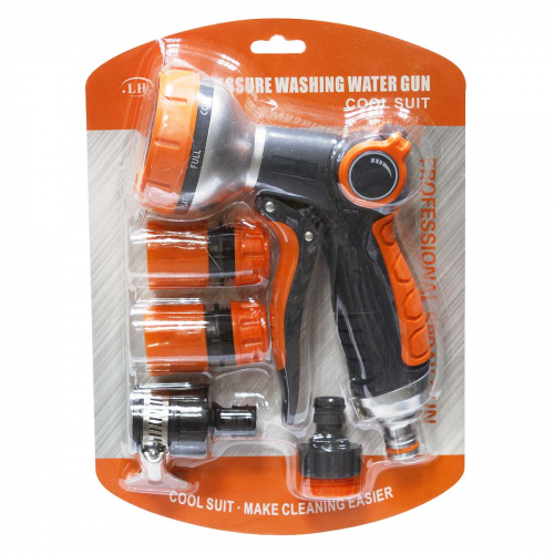 Набор для полива (пистолет для полива 8режимов с форсункой для переключения, муфта 1/2 цанга-быстросъем-2шт, соединитель для трубы. переходник) NA2408 САДОВИТА