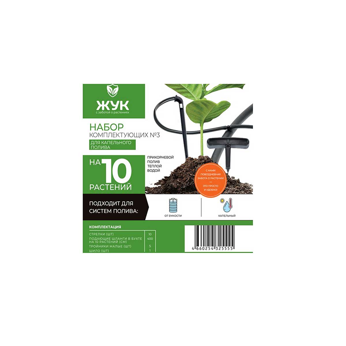 Набор комплектующих №3 для капельного полива (стрелки 10шт., шланг 4м, шило, тройник малый 5шт.) 325555-00 *15