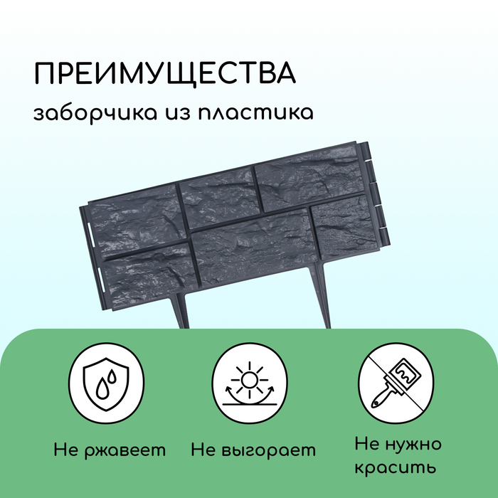 Ограждение декоративное, 24×177.5 см, 5 секций, пластик, серое, «Камень»