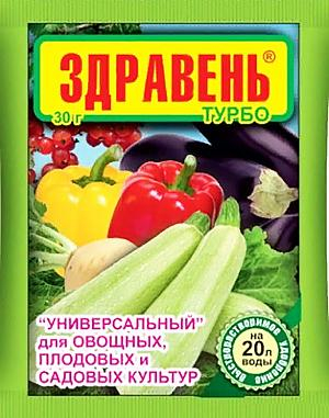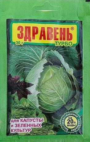 Удобрение Здравень турбо для капусты и зеленых культур - органоминеральное удобрение. Ускоряет развитие рассады, увеличивает вес и плотность кочана, улучшает вкус и повышает лежкость. У зеленных культур также существенно повышает урожай и содержание полезных веществ в продукции. Здравень ускоряет развитие рассады, увеличивает вес и плотность кочана, улучшает вкус и повышает лежкость, у зеленных повышает урожай и содержание полезных веществ в продукции. Состав: макроэлементы азот 15%, фосфор 10%, калий 20%, магний 2,5%, гумат натрия 2%; микроэлементы бор 0,06%, марганец 0,04%, цинк 0,02%, медь 0,02%, молибден 0,01%, в т. ч. в форме хелатов. Не содержит хлор! Корневая подкормка путем полива растений растворять удобрение лучше в теплой воде. Внекорневые подкормки-путем опрыскивания (на 10 л воды 10 г удобрения) можно проводить каждые 2 недели. Допустимо совмещение с обработкой против вредителей и болезней. При работе пользоваться перчатками.