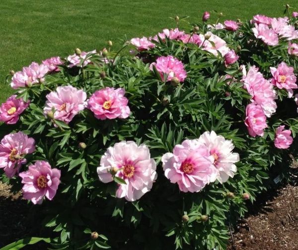 У пиона этого сорта аккуратные, грациозные кустики, чья высота редко превышает 90 см. Листва красивого тёмно-зеленого цвета, она не увядает осенью и сохраняет свою привлекательность до самой зимы. Наземная часть кустика отмирает с наступлением холодов, а весной вновь возрождается. First arrival считается очень здоровым растением, с пышным и романтичным цветением. Оно не боится непогоды, отличается удивительной неприхотливостью и требует лишь минимального ухода. Выбрать место для посадки этого чудесного пиона не составит труда. First arrival смотрится одинаково хорошо, как в одиночной посадке на фоне зеленеющего газона, так и в групповой, рядом с пионами иных сортов или с другими многолетними растениями контрастной окраски.
