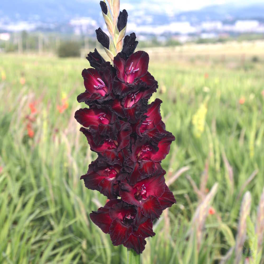 Плотно уложенный, идеально двурядный колос. Среднего сорта цветения. Крупный темно-красный цветок и более темные, практически черные края лепестков с хорошей гофрировкоЙ.