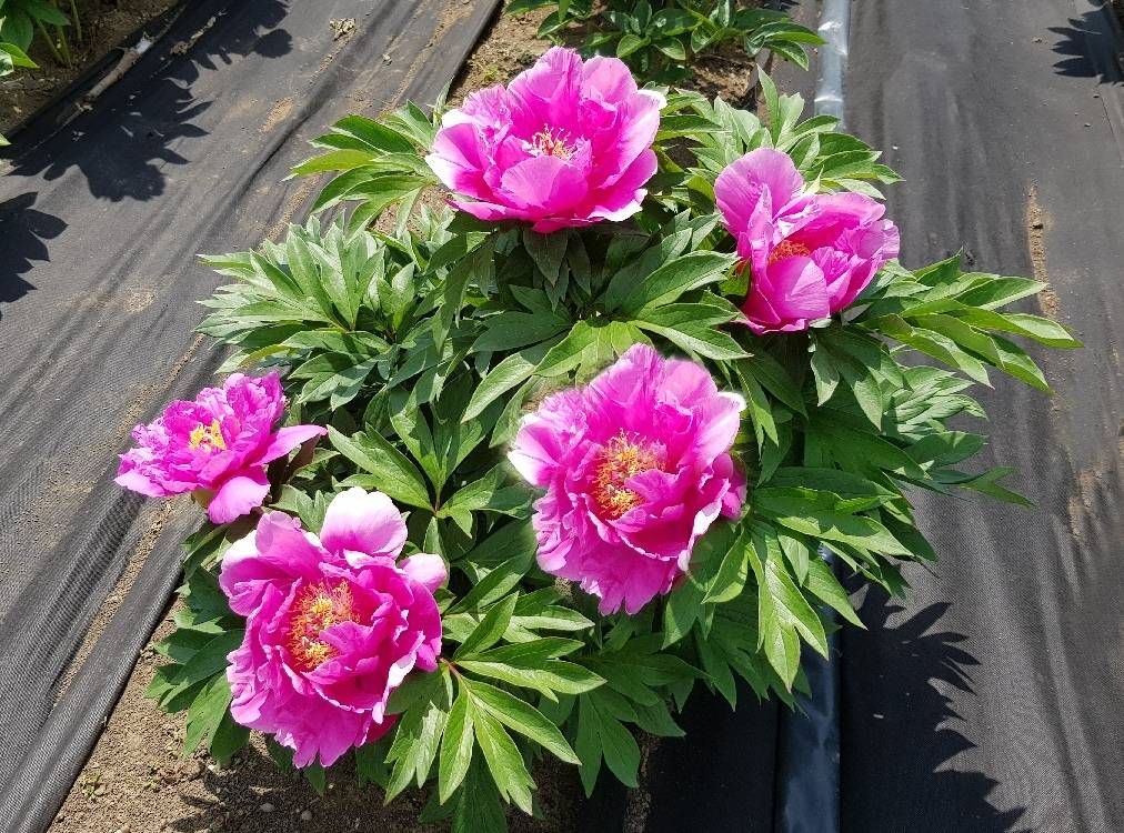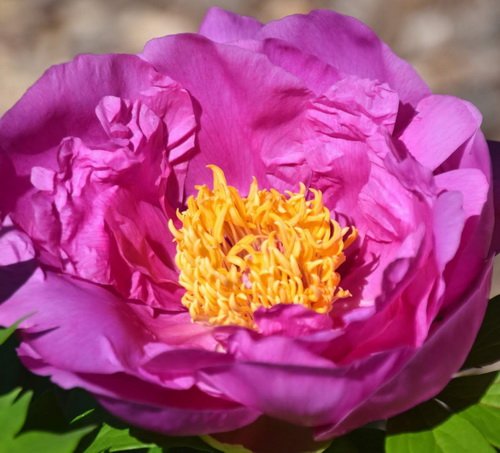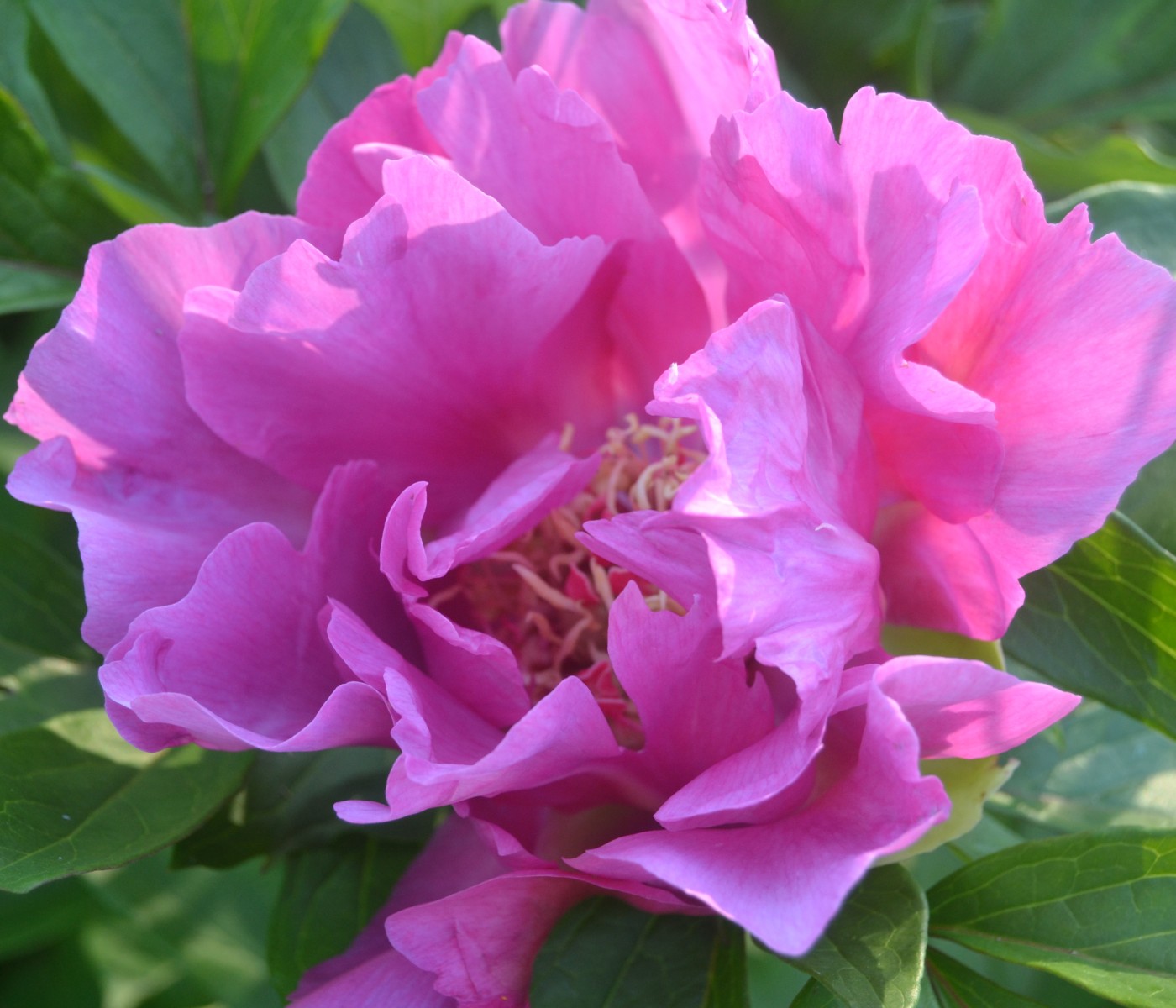 Пион Гордон Симонсон. Ито-гибрид. Среднего срока цветения. Цветок полумахровый , блестящий, цвет фуксиво-розовый с бледно-кремовыми тычинками и волнистыми лепестками. Gordon E. Simonson объединил в себе простоту и изящество одновременно.