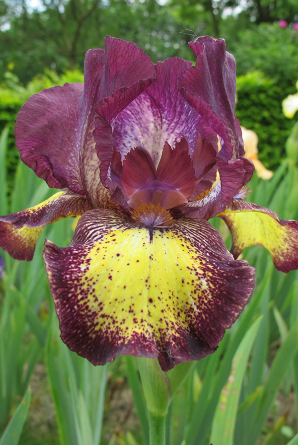 Ирис имеет аметистовый цветок, свисающие лепестки с большим количеством светлых крапин. Высота ириса достигает 90 см. Это растение можно смело отнести к морозоустойчивым сортам .