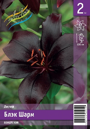 черный с бордовым отливом, тычинки оранжевые, H-130см