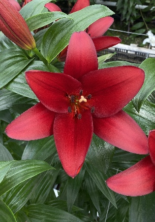 яркий кирпично-красный, с тонкой черной подводкой по краю лепестков, легкий аромат, глянцевая листва. 75-78 дней, H-145см