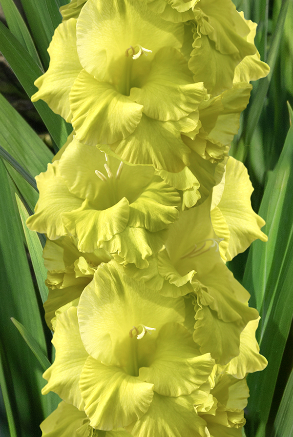 Необыкновенный сорт, крупноцветкового гладиолуса Грин Стар. Красивый однотонный цветок с зелено-желтыми лепестками. Имеет пышное соцветие с гофрировкой. Способен достигать в высоту 100 см. Подходит для срезки и оформления участка.