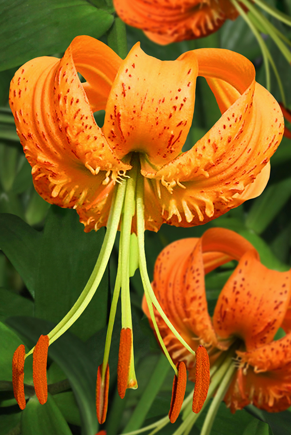 Весьма необыкновенный цветок с очень редкой формой. Его лепестки окрашены в оранжево-морковные тона, в его центре можно рассмотреть желтовато-зеленую сердцевинку, а на его лепестках очень редкую бахрому, которой украшены лепестки, а так же тонкие полосочки темно-коричневого цвета.