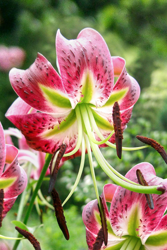 Необыкновенный цветок, с такой же необыкновенной формой. Лепестки окрашены в розовые тона, с небольшими сиреневыми оттенками. В самом сердце цветка, можно увидеть белые напыления, которые постепенно растушевываются, по мере движения к кончикам.