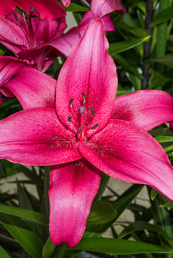 Цветок наполненный розовыми оттенками. Его нежные, но в то же время мощные лепестки, окрашены в розово-малиновые тона. В самом центре, можно заметить темно-малиновые пятна, которые уменьшаются по мере того, как они спускаются по лепесткам.
