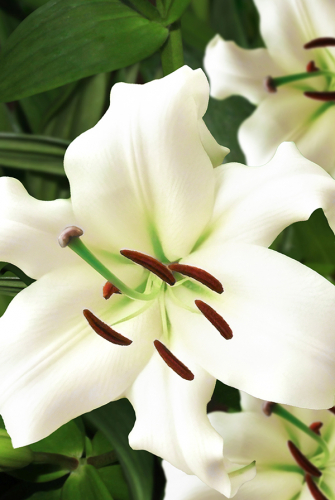Как у всякой женщины, у лилии Притти Вумен много секретов. Начнем с названия, дословный перевод звучит как «красивая женщина». Хотя может истолковываться как стройная, высокая, роскошная. Но на этом неожиданности не заканчиваются. Дело в том, что каждый год эта красотка раскрывается перед глазами своих хозяев по-новому. В первый год после посадки растение распускается белыми соцветиями с зеленой серединой и розовыми краями. Потом розовые оттенки исчезают. На 2–3 года лилия входит в силу и обретает особое величие, выбрасывая больше цветов. Нет ничего прекраснее, чем наблюдать за капризами этой по-настоящему шикарной женщины.