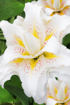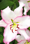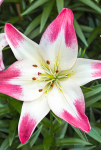 Махровый, нежный сорт. Основной окрас бутона - белый. В центре можно заметить зеленовато-кремовые прожилки. Кончики лепестков слегка подкручены. Сорт станет отличным украшением для сада, клумбы или составления цветочных композиций.