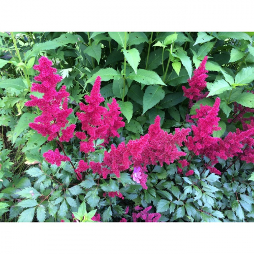 Астильба – оригинальное декоративное растение. Наиболее эффектны астильбы во время цветения. Их нежные соцветия не теряют привлекательности в течение 25-35 дней. Своими красками и формами эти растения оживляют светло-тенистые места в саду. Благодаря большому выбору сортов можно наблюдать сменяющие друг друга перистые метелки с июня по сентябрь. Соцветия могут быть пирамидальными, ромбическими, метельчатыми, но особенно изящны поникающие. Декоративность соцветий зависит от их плотности. Мелкие цветочки собраны в удлиненные метелки. Характер куста кустовидный, от прямого до раскидистого.Посадка: все астильбы влаголюбивы, зимостойки, устойчивы к вредителям и болезням. хорошо растут в светлом и полутенистом, прохладном месте, с влажным воздухом. Большинство сортов может расти в местах с довольно высокими грунтовыми водами и переносит даже застой воды. Почвы предпочитает хорошо удобренные. Важно, чтобы в корнеобитаемом слое почвы хватало фосфора и калия. Не переносит мест с сухим воздухом. Очень восприимчива к жаре!Уход: для поддержания декоративности растений следует ежегодно заботится об удобрении. Подкармливают астильбы сначала весной (азотные удобрения), потом сразу после цветения или осенью (калием и фосфором- 20-25 г на одно растение). На одном месте могут расти долго, до 15-20 лет.Использование: астильбы — прекрасные растения для озеленения. Их можно высаживать моногруппами вблизи кустарников. А одиночные вкрапления этих растений выглядят особенно элегантно среди посадок декоративных хвойных. Лучше всего чувствуют себя у водоемов или во влажных полутенистых местах. Спартан – высота растения 80 см, цветки красные.