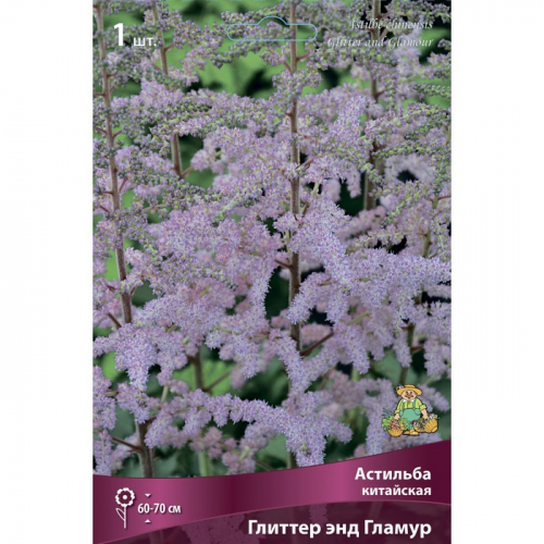 Астильба – оригинальное декоративное растение. Наиболее эффектны астильбы во время цветения. Их нежные соцветия не теряют привлекательности в течение 25-35 дней. Своими красками и формами эти растения оживляют светло-тенистые места в саду. Благодаря большому выбору сортов можно наблюдать сменяющие друг друга перистые метелки с июня по сентябрь. Соцветия могут быть пирамидальными, ромбическими, метельчатыми, но особенно изящны поникающие. Декоративность соцветий зависит от их плотности. Мелкие цветочки собраны в удлиненные метелки. Характер куста кустовидный, от прямого до раскидистого.Посадка: все астильбы влаголюбивы, зимостойки, устойчивы к вредителям и болезням. хорошо растут в светлом и полутенистом, прохладном месте, с влажным воздухом. Большинство сортов может расти в местах с довольно высокими грунтовыми водами и переносит даже застой воды. Почвы предпочитает хорошо удобренные. Важно, чтобы в корнеобитаемом слое почвы хватало фосфора и калия. Не переносит мест с сухим воздухом. Очень восприимчива к жаре!Уход: для поддержания декоративности растений следует ежегодно заботится об удобрении. Подкармливают астильбы сначала весной (азотные удобрения), потом сразу после цветения или осенью (калием и фосфором- 20-25 г на одно растение). На одном месте могут расти долго, до 15-20 лет.Использование: астильбы — прекрасные растения для озеленения. Их можно высаживать моногруппами вблизи кустарников. А одиночные вкрапления этих растений выглядят особенно элегантно среди посадок декоративных хвойных. Лучше всего чувствуют себя у водоемов или во влажных полутенистых местах. Глиттер энд Гламур – высота растения 60-70 см, цветки лилово-розовые.