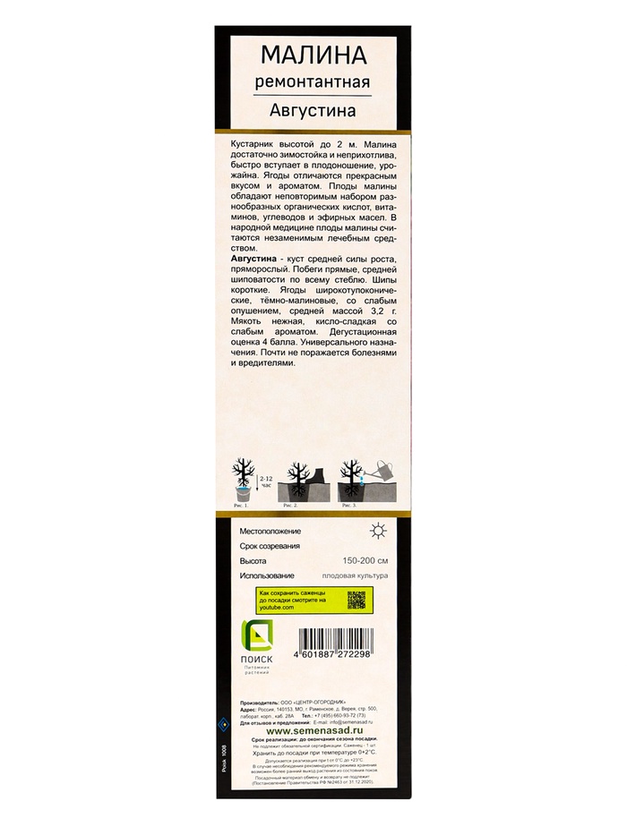 Малина ремонтантная (серия Патио) Люкс Августина 1 шт., туба, Весна 2026
