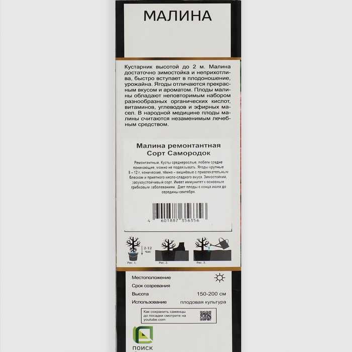 Саженец с упакованной корневой системой, в красочной упаковке.