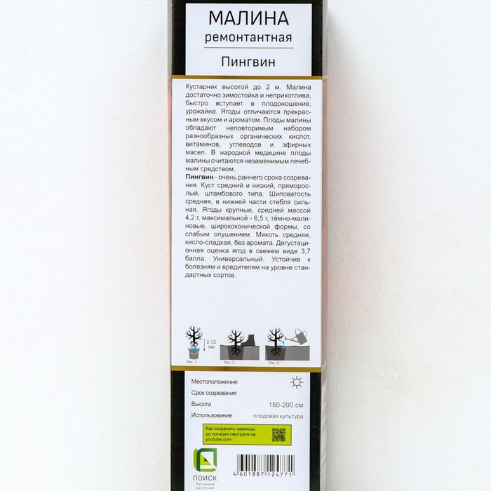 Малина ремонтантные сорта (штамбовый тип куста) "Пингвин" 1 шт, туба, Весна 2026