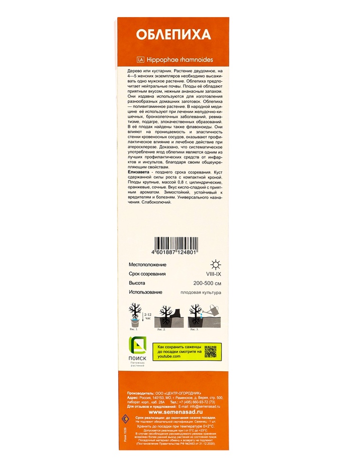 Облепиха Елизавета 1 шт., туба, Весна 2026