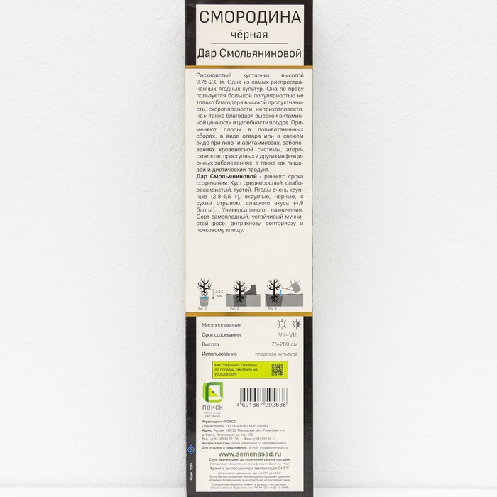 Смородина черная перспективные сорта Дар Смольяниновой 1 шт. туба, Весна 2026