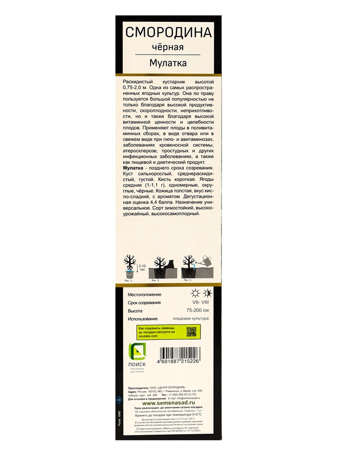 Смородина черная перспективные сорта Мулатка 1 шт. туба, Весна 2026