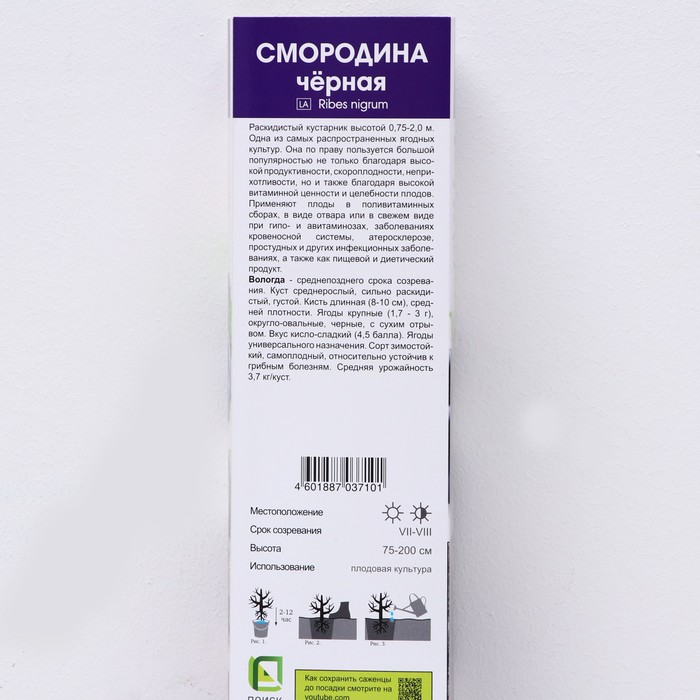 Смородина черная перспективные сорта (зеленоплодные) "Вологда ", 1 шт, туба, Весна 2024