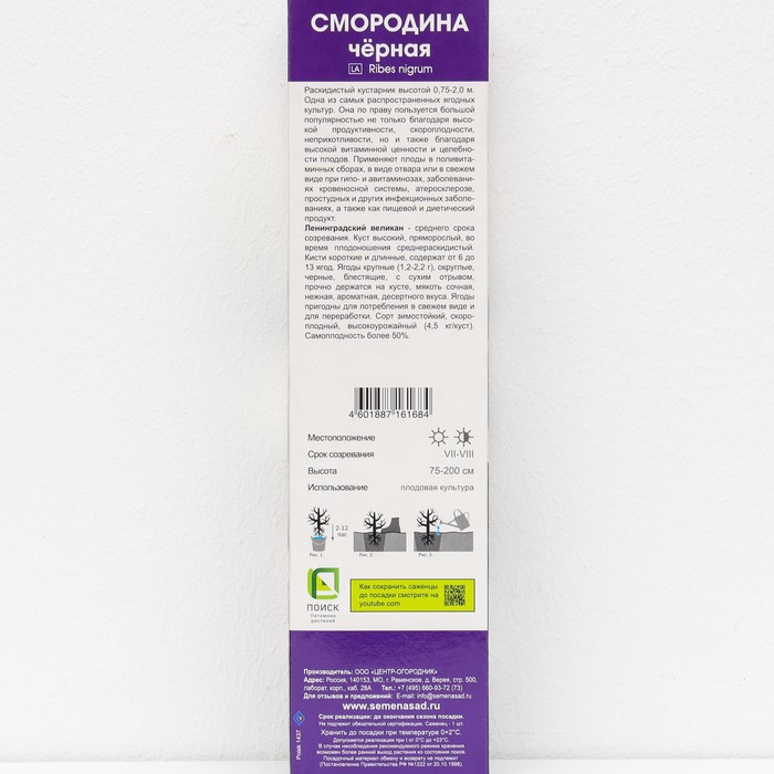 Смородина черная традиционные сорта Ленинградский великан, 1 шт. туба, Весна 2026