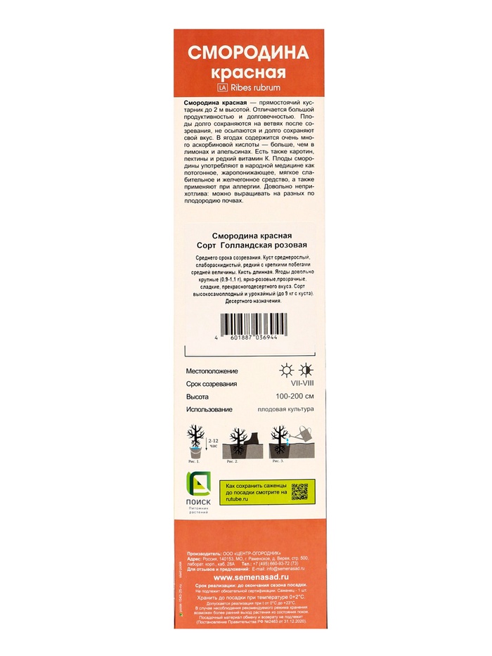 Смородина красная традиционные сорта Голландская розовая 1 шт. туба, Весна 2026