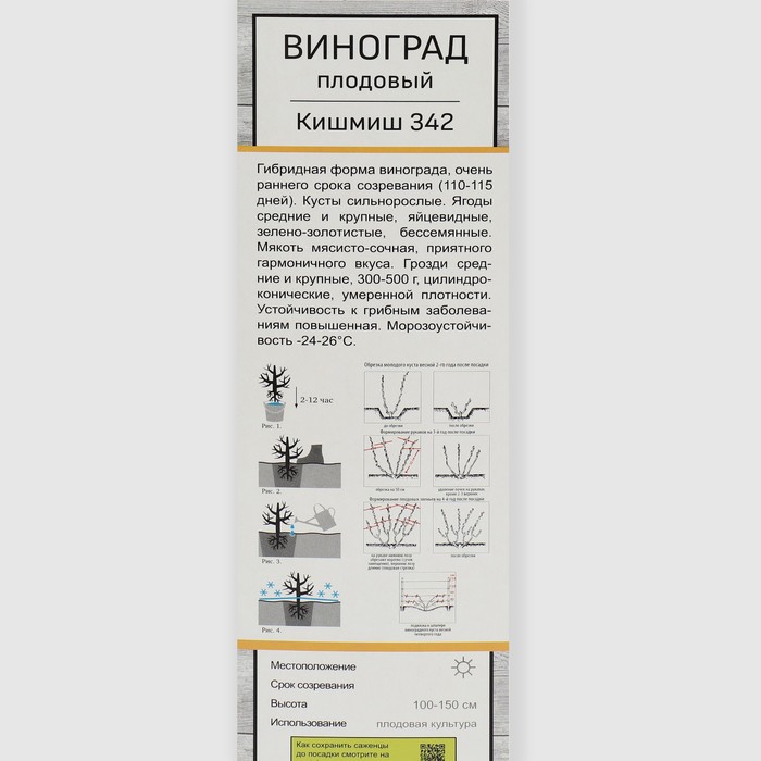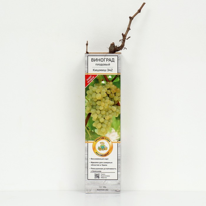 Виноград плодовый (бессемянные сорта) Кишмиш №342 1 шт., туба Весна 2026