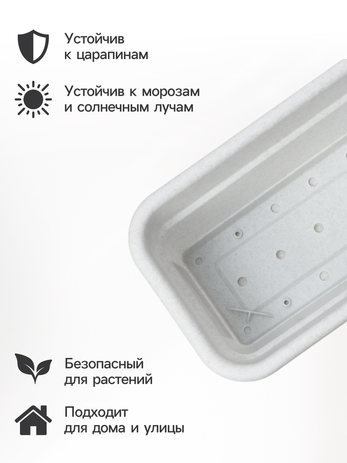 Ящик балконный для цветов, 12 л, 60×20×17 см, пластиковый, цвет мраморный