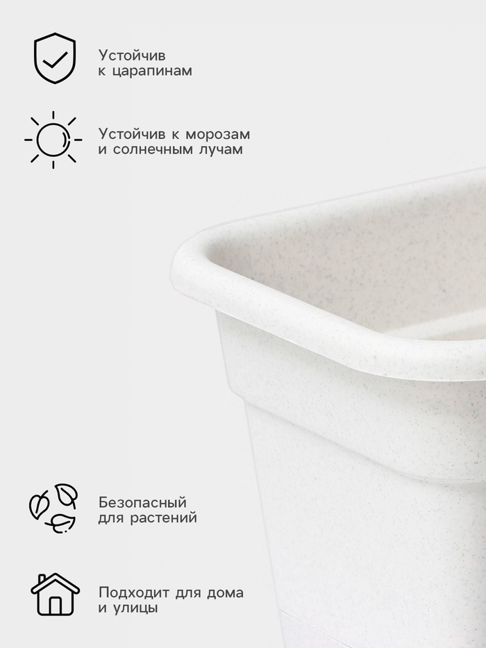 * Объём 8 литров: такой вместительности хватает для высадки нескольких растений. Земля в контейнере такого объёма медленнее пересыхает в жаркие дни.