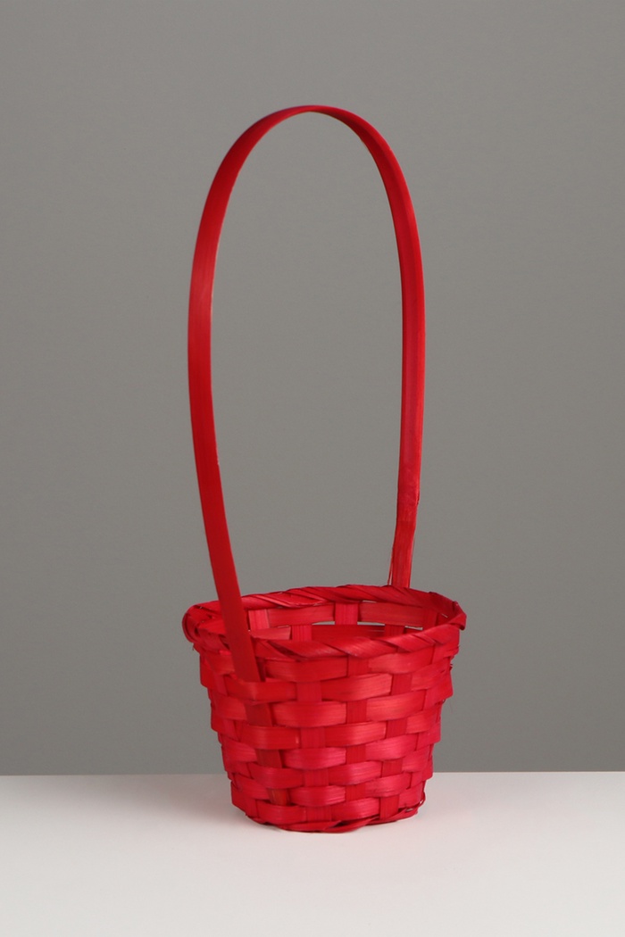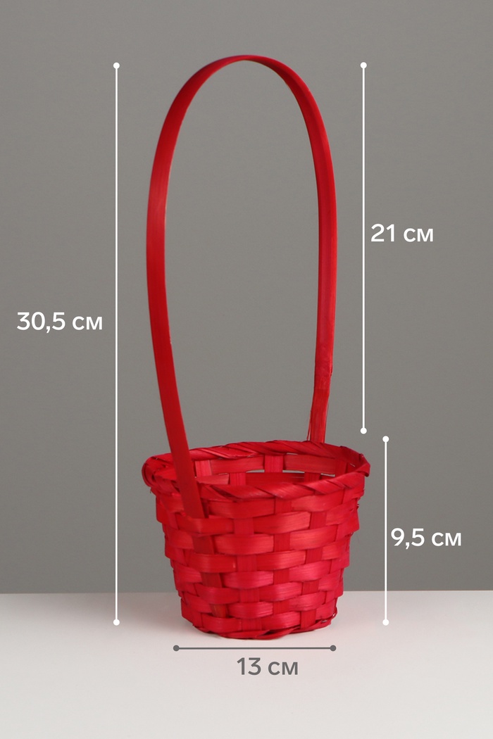 Корзина плетёная, 13×13×9.5 см, ручка h=21 см, бамбук, красная