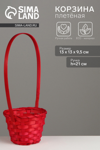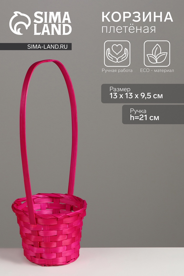 Корзина плетёная для хранения, 13×13×9.5 см, ручка h=21 см, бамбук, розовая, Greengo