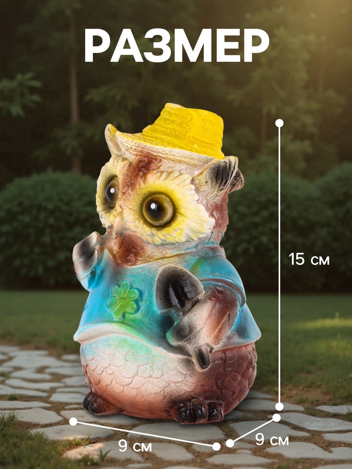 Садовая фигура из гипса «Филин в шляпке», 9×9×15 см