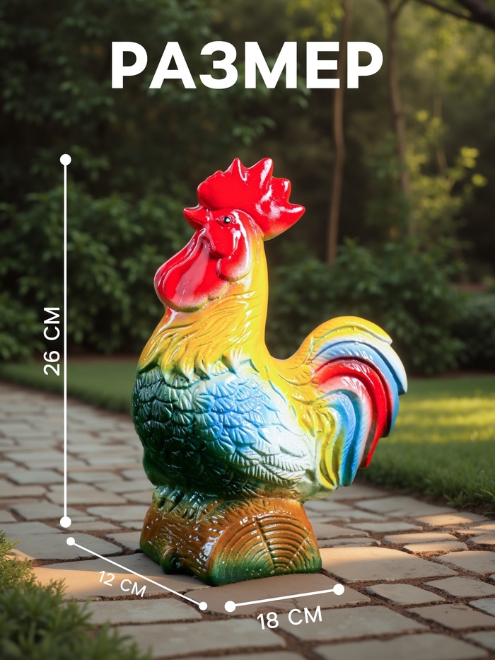 Садовая фигура из гипса «Петух на бревне», 26×12×18 см