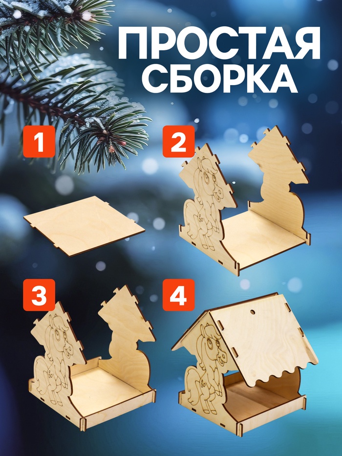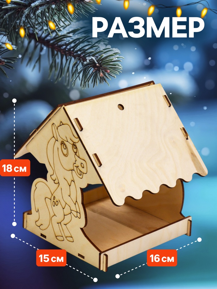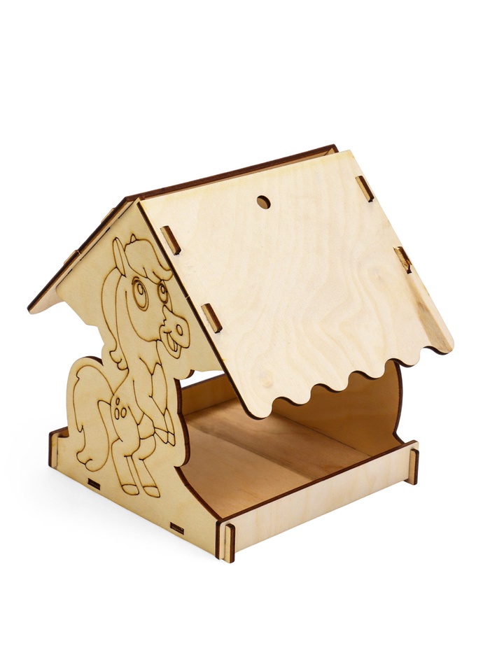Деревянная кормушка с рисунком лошади — это набор для сборки, который превращается в функциональную птичью столовую. Процесс сборки развивает мелкую моторику и прививает любовь к природе.