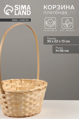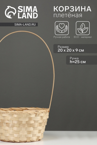 Корзина плетёная, 13×13×9.5 см, ручка h=21 см, бамбук, натуральный цвет, Greengo