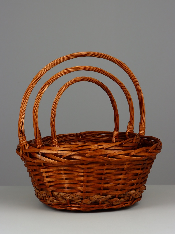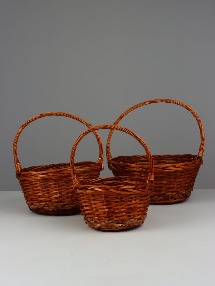 Корзина плетёная для хранения, ива, круглая, коричневая, набор 3 шт.