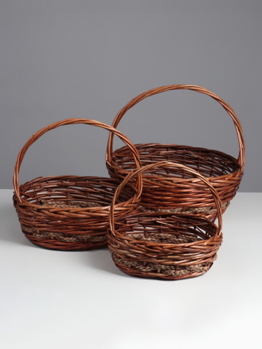 Корзина плетёная для хранения, лоза, овальная, серая, набор 3 шт.