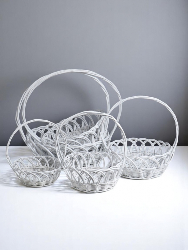 Корзина плетёная для хранения «Узор», лоза, овальная, белая, набор 5 шт.