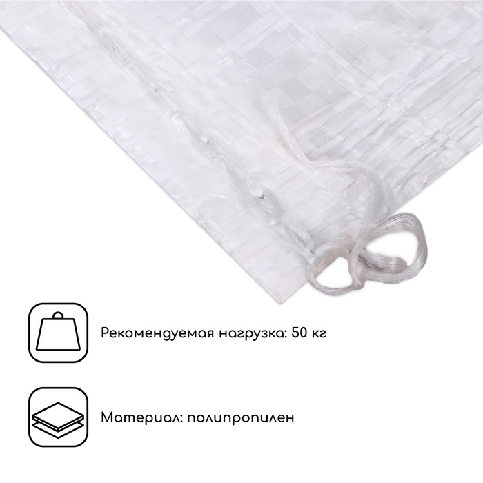 * Белый цвет и материал ПП: Светлый фон хорошо отражает свет, содержимое мешка легче рассмотреть. Полипропилен — жесткий, износостойкий материал, устойчивый к разрыву.