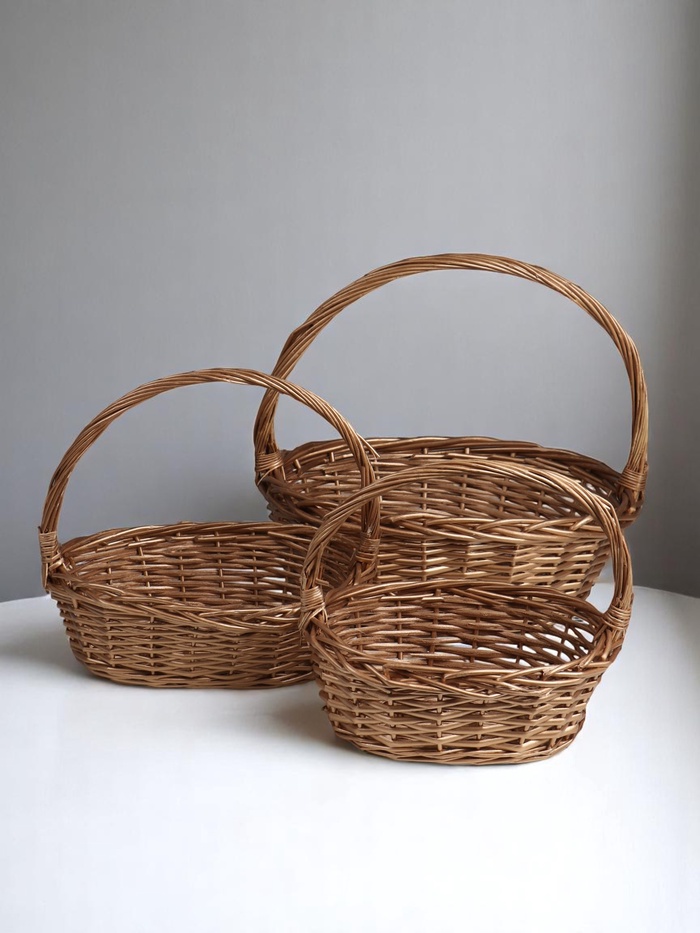 Набор корзин плетёных, овальные 3 шт., L: 39×29 см, высота 13 см, высота с ручкой 36 см.M: 33×24×11H*33HHS: