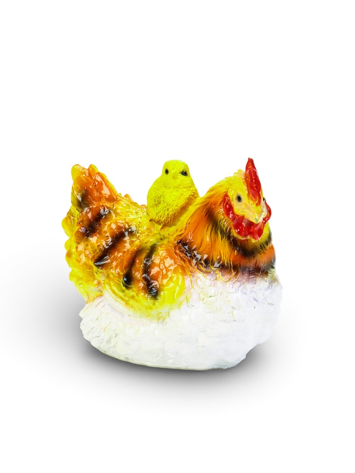 * Сюжетная композиция: фигурки передают образы курицы и маленького цыплёнка. Детали и природные оттенки делают скульптуру органичной в саду.