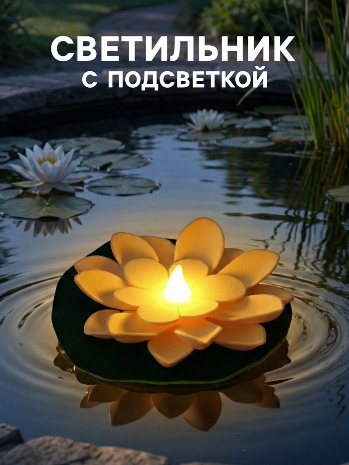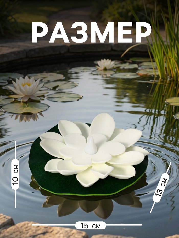 Плавающий светильник «Лотос» для пруда, белый — декоративная подсветка для водоёма и сада. Форма цветка на воде создаёт аккуратный световой акцент и дополняет оформление участка без подключения к электросети.