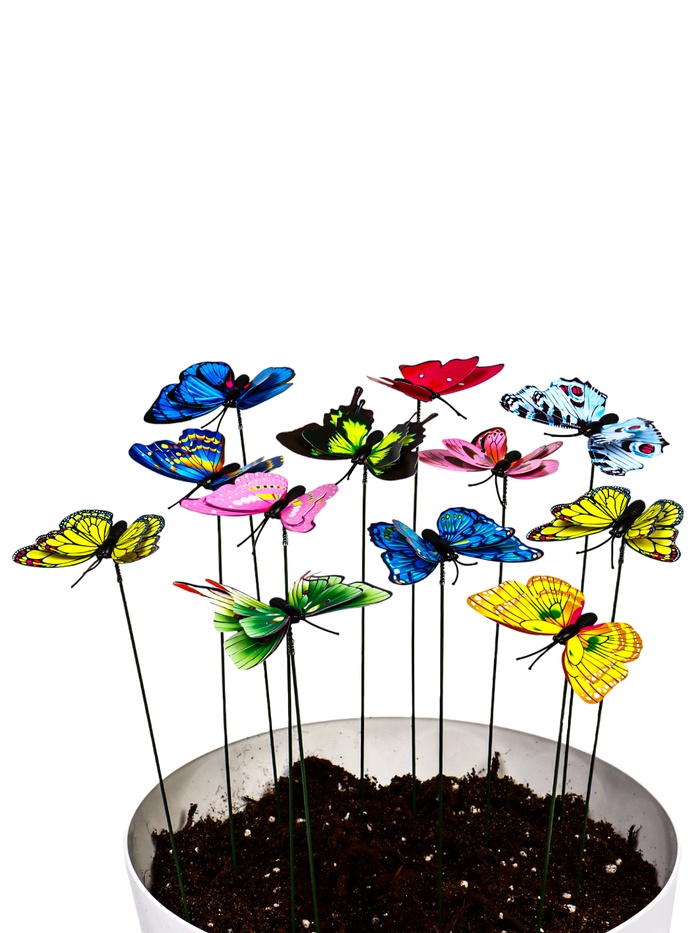 * Универсальная высота: при длине 25 см фигурки бабочек хорошо читаются на фоне средней высоты растений. Такой размер делает их заметными, но не доминирующими элементами садового декора.