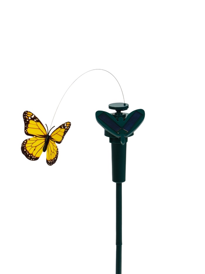 Штекер декоративный с бабочкой на солнечной батарее — это подвижный элемент для украшения комнатных растений и садовых клумб. Устройство создаёт эффект порхающего насекомого, которое кружится в воздухе после зарядки от солнца.